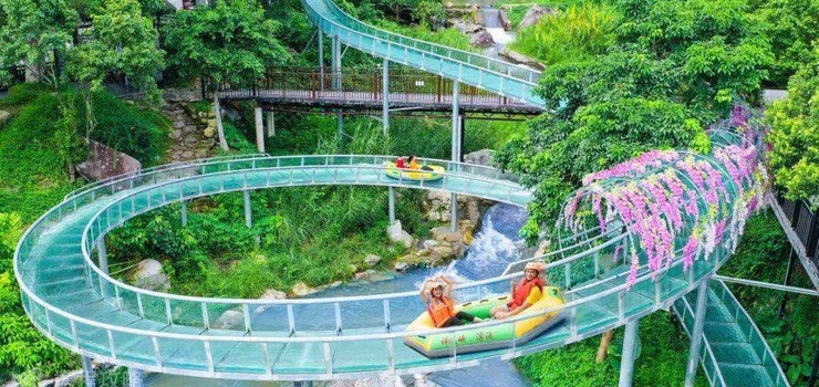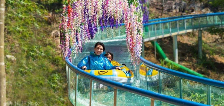 金谷涧漂流位于浙江省温州市永嘉书院内,全长880余米,垂直落差90米,由全透明玻璃打造,该项目适合单人滑行,也可以双人相拥滑行,适合单人和情侣,亲子体验!永嘉书院位于国家AAAA级楠溪江风景区核心区域,占地面积5000亩,是一个集观光旅游,休闲度假,艺术交流,教育培训为一体的大型综合体。