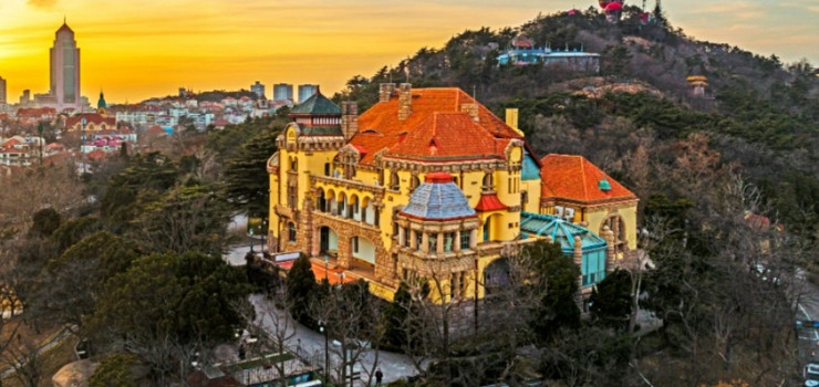 青岛迎宾馆始建于1905年,1908年正式竣工使用。主楼高4层,附楼高4层,是当时占领青岛的德国提督官邸,故名之总督官邸,俗称“提督府”。它由德国建筑师拉查鲁维茨设计。迎宾馆是一座典型的欧洲古堡式建筑,是德国威廉时代的典型建筑式样与青年风格派手法相结合的欧式建筑。内部布局典雅华贵,气派不凡,置身其中可享受到浓郁的欧洲宫廷气氛,迎宾馆又是一座博物馆,收藏着东西各国的稀世珍品。
