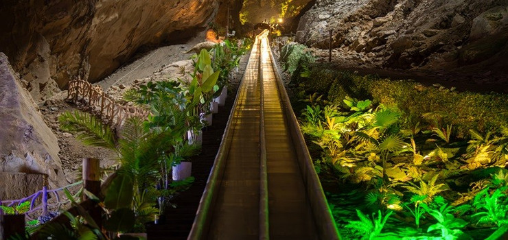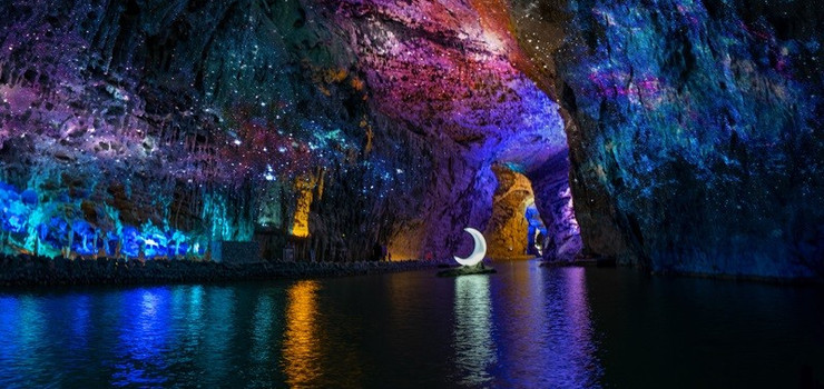 如今的天泉洞,开放的主洞约3公里,分了七个大厅,厅厅千奇百怪,洞洞万象异姿,气势恢宏,流水潺潺,漪纹涟涟,栈道顺岩横挂,绝壁凌空。石花、石乳、石笋等洞内沉积物种类繁多,或卷或翘、或立或吊,重镶迭嵌,千态万状,似仙阙楼台,若瑶池胜景。