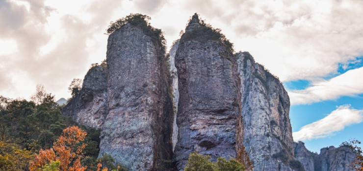 断崖峭壁犹如刀削斧劈,山成半片,直立千仞。连绵数千米的绝壁依次展开惟妙惟肖的迎风屏、赤象屏、孔雀屏、鼓浪屏等巨幅岩雕画屏,是中国很长很大的海上天然岩雕。在天柱峰和展旗峰的峰顶拉上一条绳子,高达200米,宽亦200多米,可谓世界罕见。人在绳子上表演骑自行车、翻跟斗、飞翔等动作,堪称一绝。在北端仙桥景区,一座悬桥飞架于两座险峰之上,传说是仙人王子晋骑鹤飞临之地。由于山景险秀、历史悠久,这里还有许多风景和民间传说的飞仙有关。