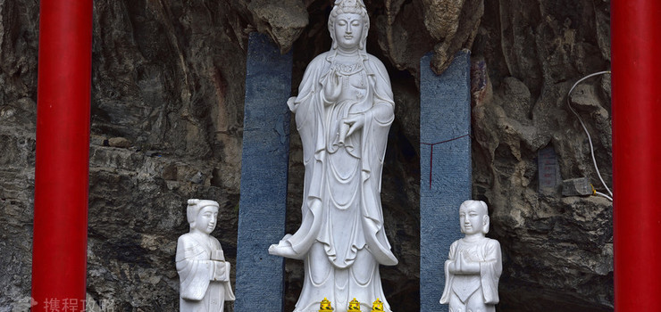 南天门东侧,就石钟乳雕成的一条巨龙,翘首张目,望看观音,似乎在听观音的吩咐,时刻准备把吉祥降到人间。