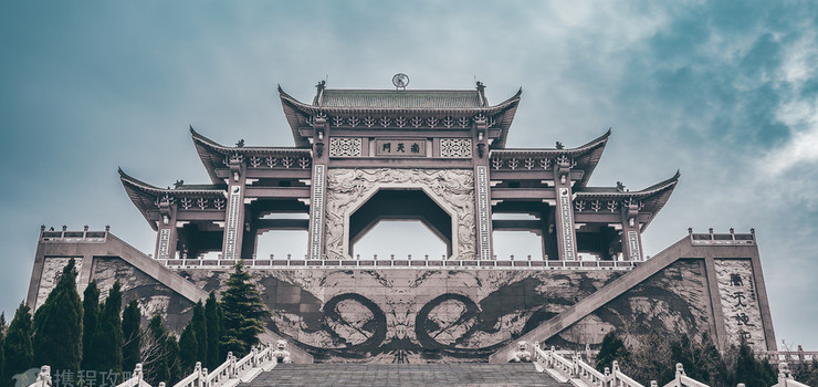 到云梦山,首先映入眼帘的就是南天门。南天门在云梦盆地垭口的南山峭壁下,就山崖的钟乳石而建,上下两层,由四根柱石构成,形似大门。上层是钟乳石自然形成的一尊白衣观音。整个门洞全由石料构成。故有这样的歇后语:南天门的过木——干板硬正。