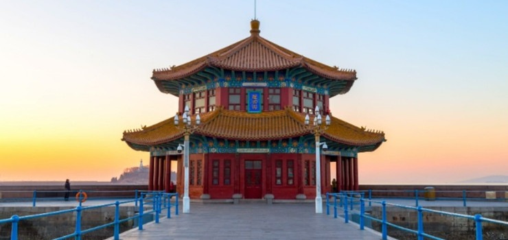 栈桥位于青岛中心城区的南部海滨,是一条440米长的海上长廊,从陆地延伸入海中。栈桥建于清光绪年间(1892年),已有百年历史,一直以来被视为青岛的象征。栈桥尽头的回澜阁,则是青岛近代历史的见证。