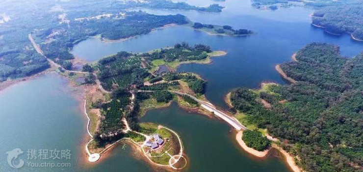 南丽湖位于定安县城南,是琼北的一处人工淡水湖。这里气候宜人,常年水温22℃左右,湖水清碧,四周胶林环抱。湖中各类小岛植被丰富,野花争艳、竹木苍翠,人游其中如痴如醉。
