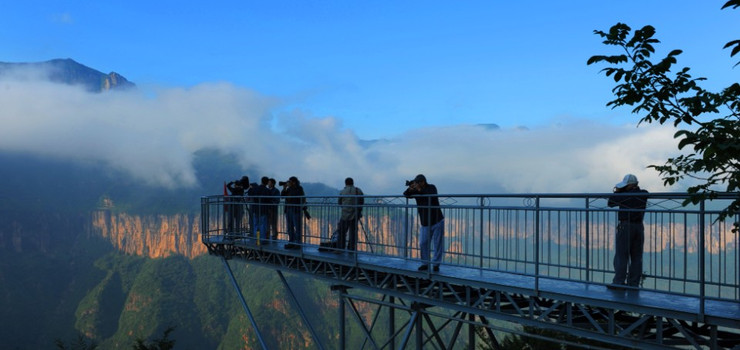 七色俱全的瀑布彩虹,微风吹来,彩虹随风飘移,忽隐忽现,虚无飘渺,如观仙境。登上栈道,慢慢上山:往下看如同天上看人间,袖珍山水,微观景现;往上看千尺绝壁,立于眼前,青松倒挂,盘根错节,胆小的朋友会心惊肉跳,浑身哆嗦。但是不到山顶非好汉,坚持就是胜利。
