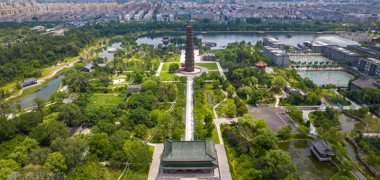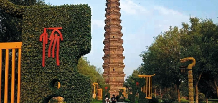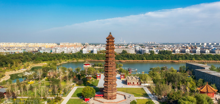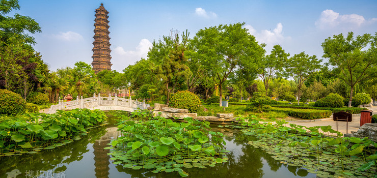 开封铁塔是中原文化中一颗璀璨夺目的明珠,如擎天玉柱耸立在开封城东北隅,它以精湛绝妙的建筑艺术和宏伟秀丽的身姿而驰名中外。铁塔又名“开宝寺塔”,坐落在开封铁塔公园内,因塔身全部以褐色琉璃瓦镶嵌,远看酷似铁色,故称为“铁塔”。