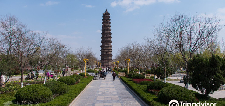 铁塔建于北宋皇佑元年(1049年),距今已有900多年历史。 铁塔成等边八角形,共十三层,高55.88米,底层每面阔为4.16米,向上逐层递减。塔身遍砌花纹砖,上有飞天。