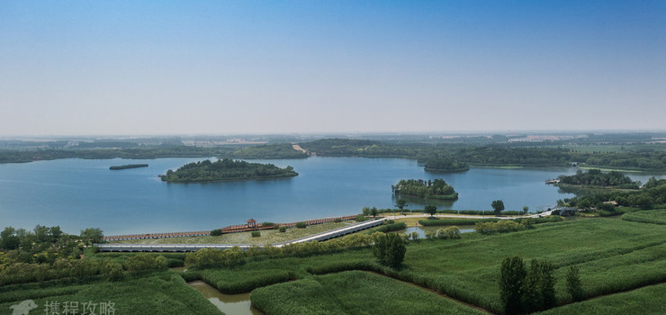 马踏湖景区分为三个区域:主湖区、湿地体验区和保护保育区。主湖区面积4000亩左右,湖区水面1500亩,沿着湖边游览一圈4.3公里。游览区有形色各异的桥梁30座,亭子7座,湖中岛5座,码头16个,栈道 10 条。湖中有五贤祠、徐夜书屋、冰山遗址、柏寝台、秋水渚、锦秋亭、明镜桥等名胜古迹。整个景区自然风光优美,人文景观荟萃。湖内沟叉纵横,河道交织,形成了我国北方独具特色的“村村靠湖、家家连水、户户通船”的水乡风貌,素有“北国江南,鱼米之乡”的美誉。