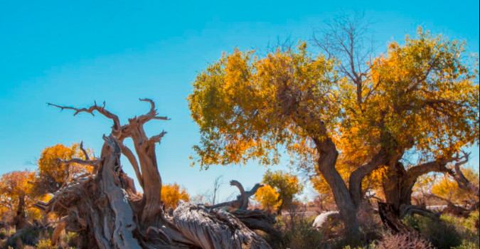伊吾胡杨林位于新疆哈密市伊吾县淖毛湖镇,是中国境内分布较为集中的胡杨林,也是世界极古老、树形极具特色、道路通达条件极好的原始胡杨林。景区面积47.6万亩,开发游览环线38公里。