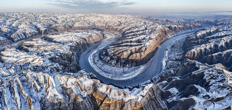 黄河流经永和68公里,自北向南形成英雄湾、永和关湾、郭家山湾、河浍里湾、白家山湾、仙人湾、于家咀湾7个大湾,统称乾坤湾,是我国目前河流中规模最大、最密集、发育最完好的干流峡谷型蛇曲群,是建设黄河国家文化公园、打造中华文明重要地标的核心区。黄河乾坤湾景区位于中国最美十大峡谷之一的晋陕峡谷,由黄河一号旅游公路“0KM”标志文化驿站、阁山、东征村、于家咀村、仙人湾、于家咀湾、黄河蛇曲国家地质博物馆七部分组成。