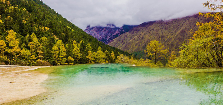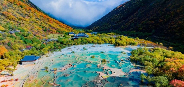黄龙以彩池、雪山、峡谷、森林“四绝”著称。自然景观犷中有精,静中有动,雄中有秀,野中有文,构成奇、峻、雄、野的景观特点,享有人间瑶池之誉。