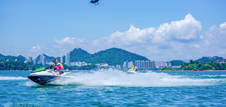 千岛湖希尔顿水上乐园目前游水上项目:动感游艇兜风(10km)、水上飞人(20分钟)、滑水冲浪(10分钟)、摩托艇漂移(6km)、水上沙发(6km)、水上飞鱼(6km)、水上陀螺(6km)、水上香蕉船(6km)、皮划艇(不限时)、透明网红皮划艇、浆板(不限时)、休闲电瓶船(30分钟)、水上自行车(不限时)、成人闯关竞技区、儿童冲关娱乐区、水上步行球(10分钟)等大小20多个项目。