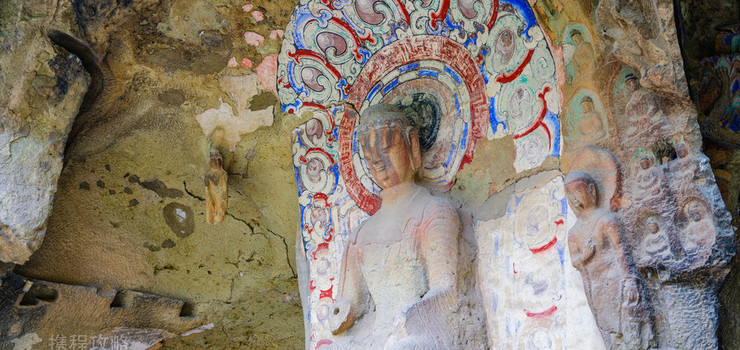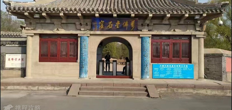 万佛堂位于义县城西9公里大凌河北岸的福山上,分东、西两区,共存16窟43O余尊造像。据碑刻记载,西区是北魏大和二十三年(公元499年)平东将军营州刺史元景为皇室祈福开凿的,现存9窟,分上下两层,下层为6大窟,上层为三小窟,保存较为完整的是第一窟和第六窟。