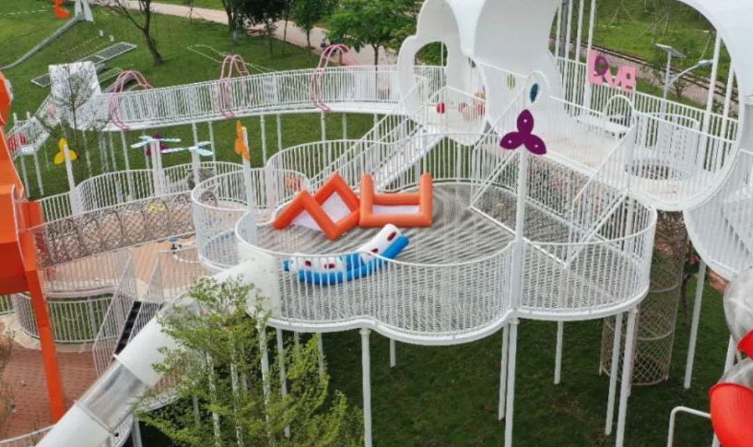 免费开放的儿童游乐天地!木质攀爬架、鲜橙滑梯、沙池寻宝、秋千矩阵等设施均以自然材质打造,融入地形与植被,让孩子在安全探索中锻炼体能、激发想象力。