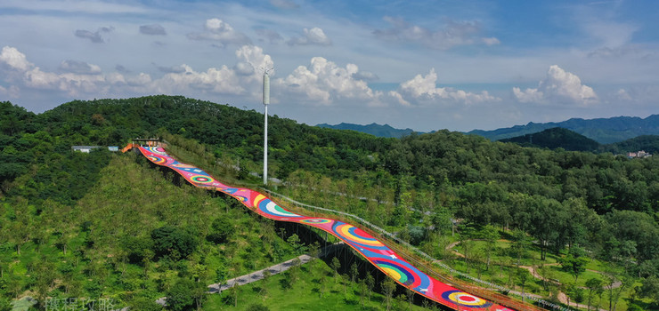 260米大湾区超长的七彩滑道依山势而建,乘坐橡皮圈从云端俯冲而下,感受速度与色彩的激 情碰撞,适合全年龄段挑战。