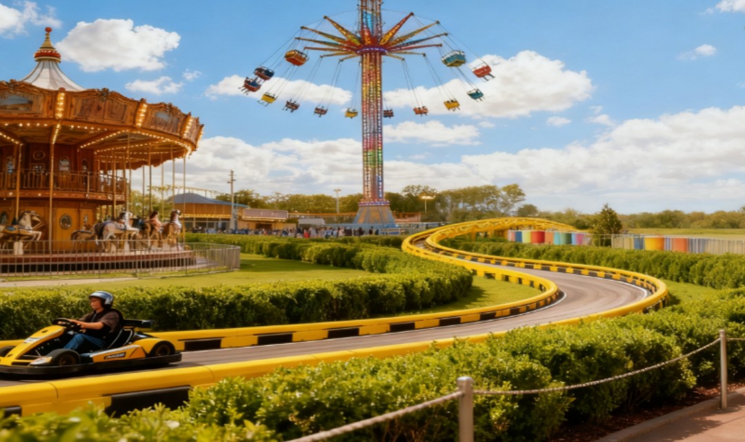嘉年华乐园:卡丁车飙出酷飒感、跳楼机解锁刺激爽感、旋转木马甜满心房、转转杯趣意十足,还有超多游玩项目一站式承包,带你开启专属奇妙狂欢。