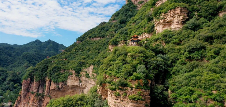 山上的风景十分优美,登山远眺可以看到来时的路线。大家可以看到沿途山壁的凹陷处有许多小立棍,这是当地的一种风俗习惯,寓意是:支支山,不腰酸。