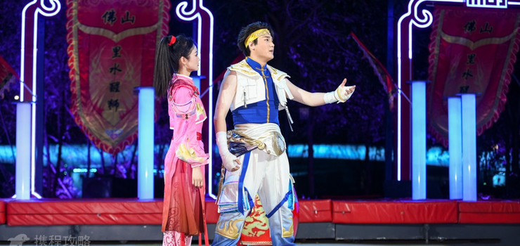 沿岸共有“鸣鼓醒狮、幻境入梦、花间恋月、鼓舞问道水岸花语、戏梦情深、声动南粤、芯语心愿、花开天下共九幕主题演艺场景。游船每行进至一幕,就有对应剧情的炫酷灯光秀或唯美真人舞美表演,配合游船上的全景音效声乐,这一刻,游客仿佛成为了故事主人公,身临其境,亦真亦幻。