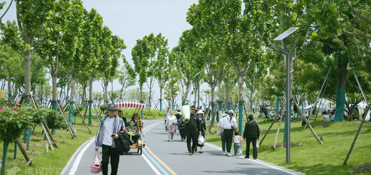 项目通过理水、造林、营城,构建生态绿肺,创建乡野梯田、湿地花坡、丛林绿野、静谧之森四种自然生境,描绘“百年梧桐金满地,十里画廊赏繁花”的生态画卷。创新集赏花、萌宠、运动、游乐等多种林下活动项目于一体的城市郊野绿色新玩法,展现“半城繁华半城景,人城境业和谐生”的优美环境。