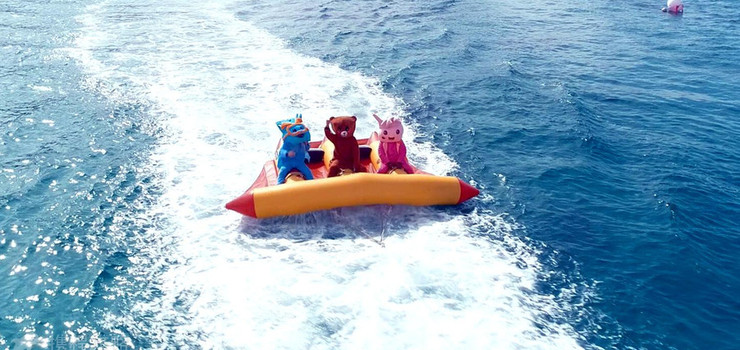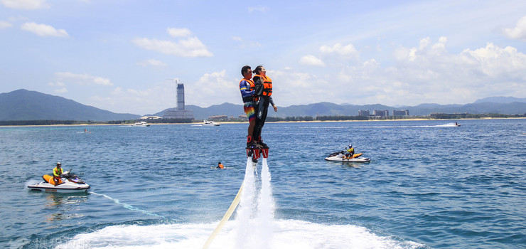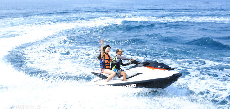 温馨提示:参加海上娱乐项目有落水的风险,必须穿戴好救生衣。