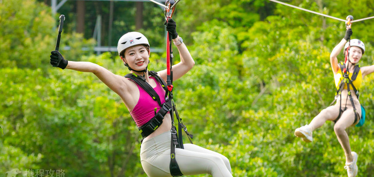 惊喜穿越,又叫蓝线。适合1.2米以上儿童和成人游玩,关卡难度适中,通关容易,高空体验感非常强,是针对难度有一定要去但是又不想耗体力人的理想选择,而且在这个通关中,可以远眺北江,看到西樵全景,关卡处处是惊喜。