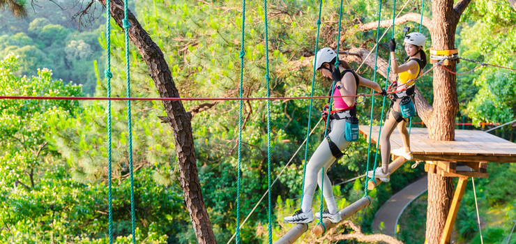 西樵上山森吧飞越丛林探险乐园是升级版3.0的以穿越主题的飞越丛林探险乐园,其中从平衡穿越(绿线)到惊喜穿越(蓝线)、趣味穿越(红线)、**穿越(橙线)、极限穿越(金线)等主题线路,让你一次性享受不一样穿越丛林树上乐园探险乐园,“飞越从林探险乐园”由法国原装引进,完全保证了项目的安全性及趣味性。建设者都来自专业外籍团队,所有设施、设备、建材,小至一条绳、一根木条,全部由法国原装进口,所有设施设备经国际权威专业机构检测,荣获欧盟“CE”安全认证。