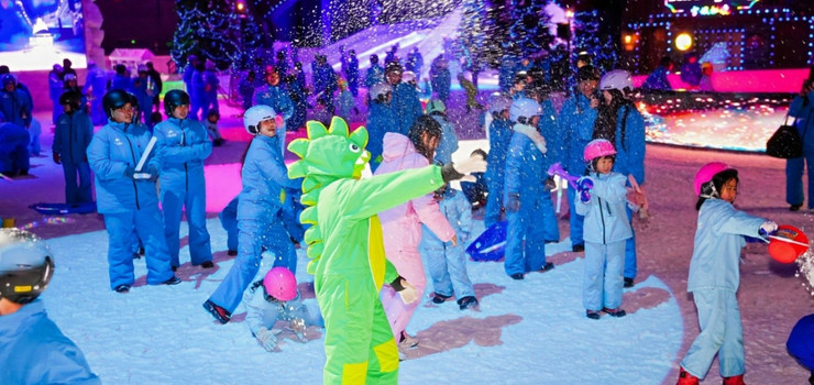 冰雪乐园专为度假者打造了20余种娱乐项目,如雪地狩猎、雪圈速滑、极地滑梯、雪妖秘境、雪道越野、麋鹿探险、雪山穿越、小木匠欢乐大转盘、洛洛企鹅大本营等。度假者可以在“雪地狩猎”里体验射击的紧张与刺激;也可以在“雪圈速滑”从6米高台上一滑而下,与欧若拉女神奇妙相遇,感受风声与心跳;又或是前往“雪山穿越”一览阿尔卑斯式村庄风貌、在“雪妖秘境”与神秘人物奇妙相遇;去“小木匠欢乐大转盘”感受驰骋在阿尔卑斯原始森林的快乐;乘坐ATV在“雪道越野”里收获雪上骑摩托的新奇体验;在1000平米如冰镜般剔透的“冰镜湖”上,穿上冰刀鞋自由滑行,一展动感身姿;在“洛洛企鹅大本营”收获与“白眉绅士”巴布亚企鹅亲近有爱的互动体验……