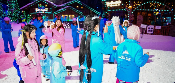 此外,冰雪乐园内还有集冰雕、迷宫、溶洞为一体的大型“冰宫探险”体验区。其中总长9.5米的“风雪溶洞”以雪霜冰峭为设计灵感,如云一般的浓密雪雾布满溶洞四周。度假者将化身探险家,迎着疾风穿越冰洞,一秒穿越至极地空间。冰宫四周被长久累积的冰雪层覆盖,八大不同风格的精致冰雕作品也分布其中。