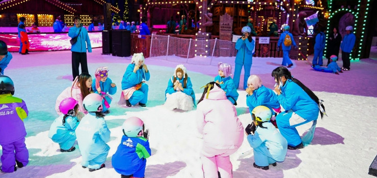 阿尔卑斯雪世界·滑雪场配备有5条坡度各异、长可达280米的雪道,以及8条同时运行的魔毯。其中,41m宽度的山顶道作为进阶雪道提供更具挑战性的滑行速度和陡峭坡度,是滑雪“老玩家”大秀平衡和控制的主场!自由技巧滑行的过程中,滑雪爱好者还能俯瞰雪场的全貌。