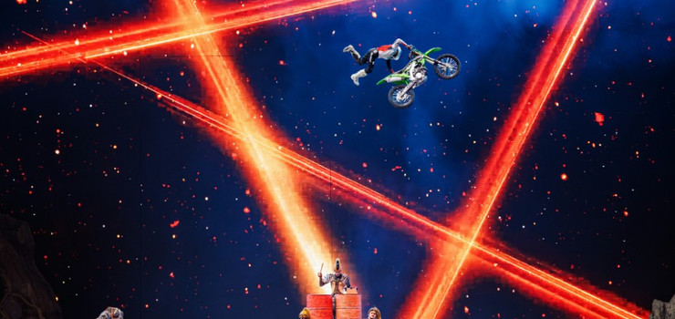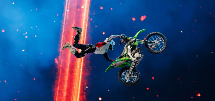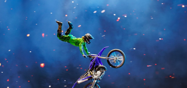 在《极限飞骑》节目里,摩托飞车,阵阵轰鸣,跨越极限的距离,在空中划出一道道惊险的抛物线,360度旋转、倒挂金钟、侧身飞踢、8车连飞等惊险特技犹如火龙吐息,这是速度与激 情的较量。