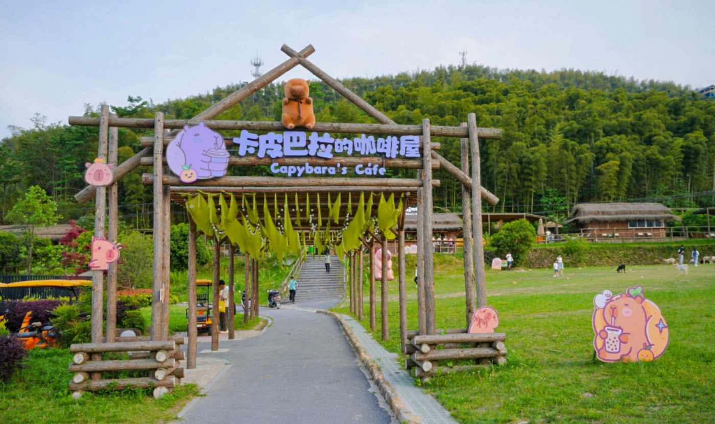 在安吉熊猫部落探险乐园的热带雨林区,藏着一处慵懒又治愈的秘密基地——卡皮巴拉咖啡屋!这里是全球网红动物“水豚君”(卡皮巴拉)的主题休闲空间,将萌趣自然与咖啡香完美融合,带你瞬间穿越到南美洲的湿地丛林。