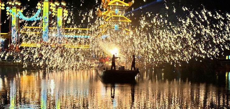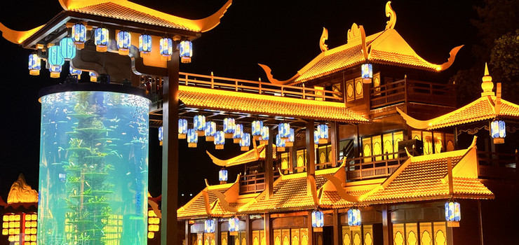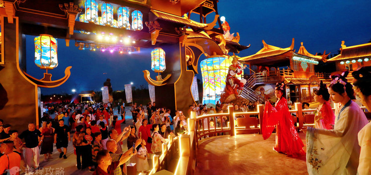 船歌岛景区是传统文化与现代休闲的完美结合。西游文化的精髓在“猪八戒背媳妇互动主题小镇”得以传承,小镇依托《西游记》的奇幻世界,巧妙融入科技、文创、休闲、美食、文化、亲子、娱乐、互动等多元化元素,缔造了一处集创意美食、沉浸演艺、休闲娱乐、互动体验、文化创意、科技亮化于一体的沉浸式西游文化体验地。