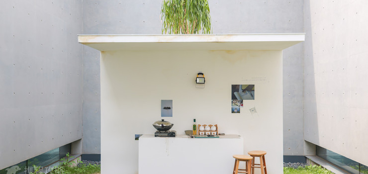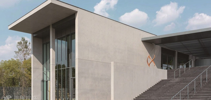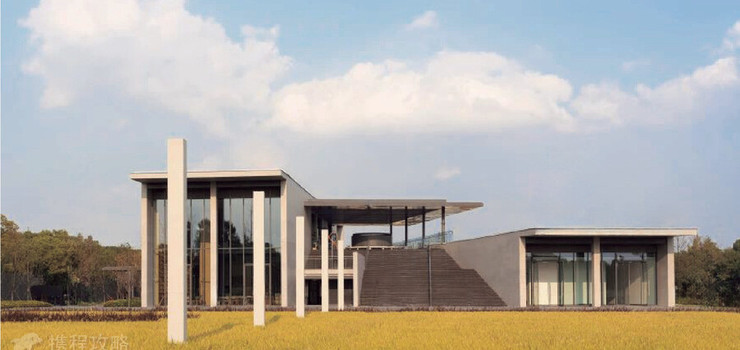 从空中俯瞰,嘉源海美术馆坐落于水网纵横、茂林葱郁、百家农庄、千顷葡园的自然风貌之间。美术馆主体沿用“清水混凝土诗人”安藤忠雄一贯的风格,通过对清水混凝土、几何结构、天然光线的巧妙运用,呈现自然朴实、不加修饰的刚硬质感。