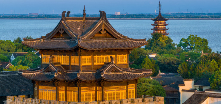 综合游客服务中心,整个中心建筑面积54135m²,采用飞檐翘角等造型,是典型的中国古典风格建筑。