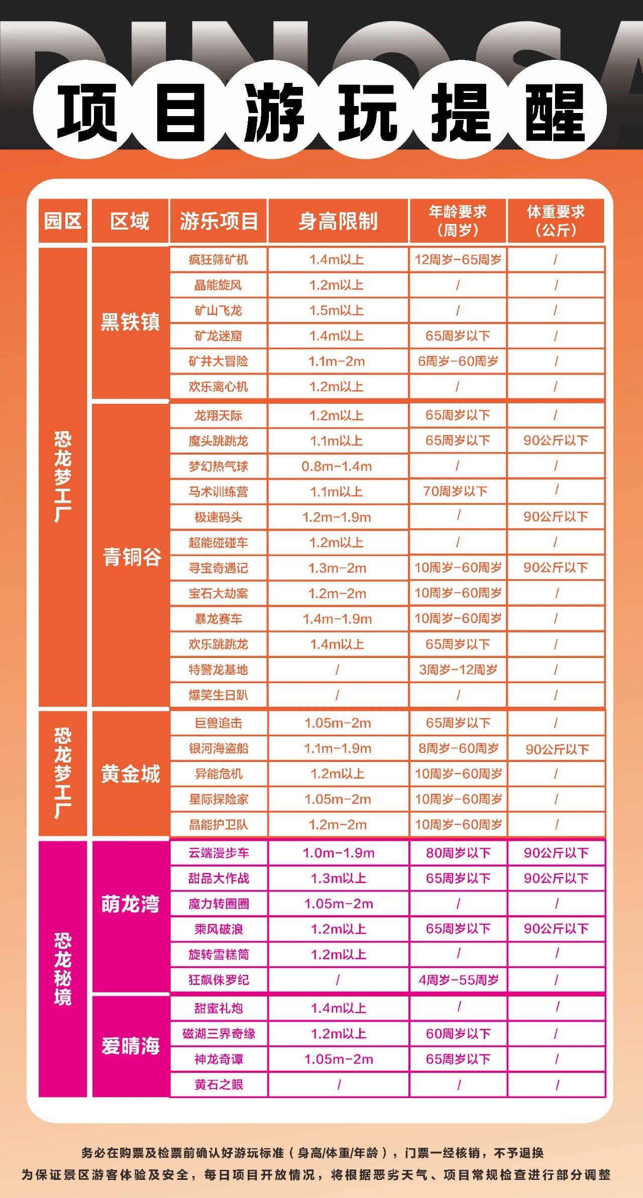 ⑦体重超过90公斤的游客及50周岁以上游客,部分设备不能游玩。