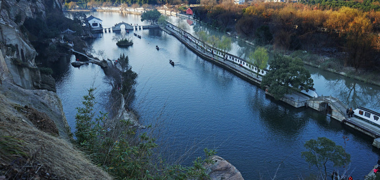 湖内有陶公洞、仙桃洞,很富情趣。小舟入洞,如坐井观天;碧潭岩影,空谷传声,景色尤称奇绝。湖畔 有听湫亭、饮绿亭、香积亭、扬帆舫、稷寿楼、小稽轩、桂岭等景点,霞川桥、秦桥、万柳桥等各式古桥横跨 两岸。沿石磴上山,可一览江南水乡风光。
