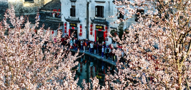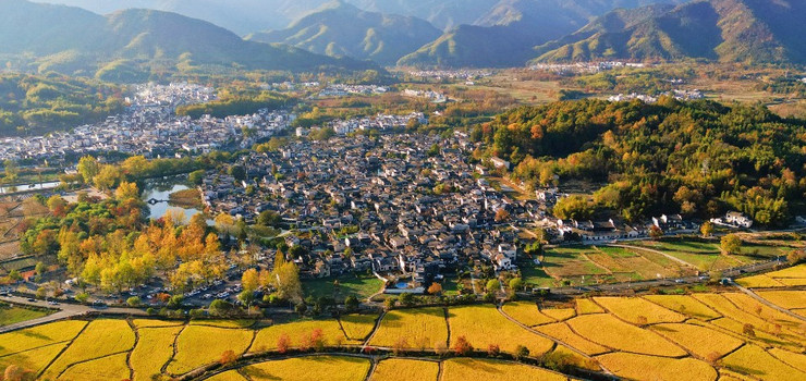 在徽州,每个村的婚嫁习俗都有不同;在宏村,新人要绕村口大树三圈,预示新人百年好合、日子红红火火。活动中的亮点多多,唢呐、媒婆、司仪老倌,新郎骑着高头大马、新娘坐着4人花轿。传统的婚俗,在粉墙黛瓦间、在小桥流水间、在秋意浓色间,一份欣喜、一份欢乐、一份文化的传承。
