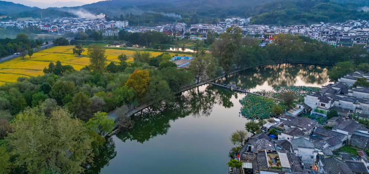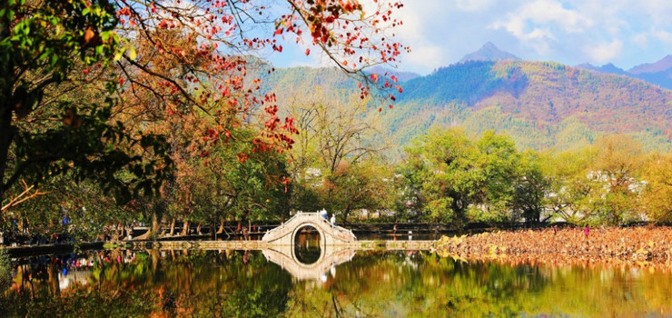 在皖南众多风格独特的徽派民居村落中,宏村是代表性的。从整个外观上说,宏村是古黟桃花源里一座奇特的牛形古村落,既有山林野趣,又有水乡风貌,素有“中国画里的乡村”之美誉。